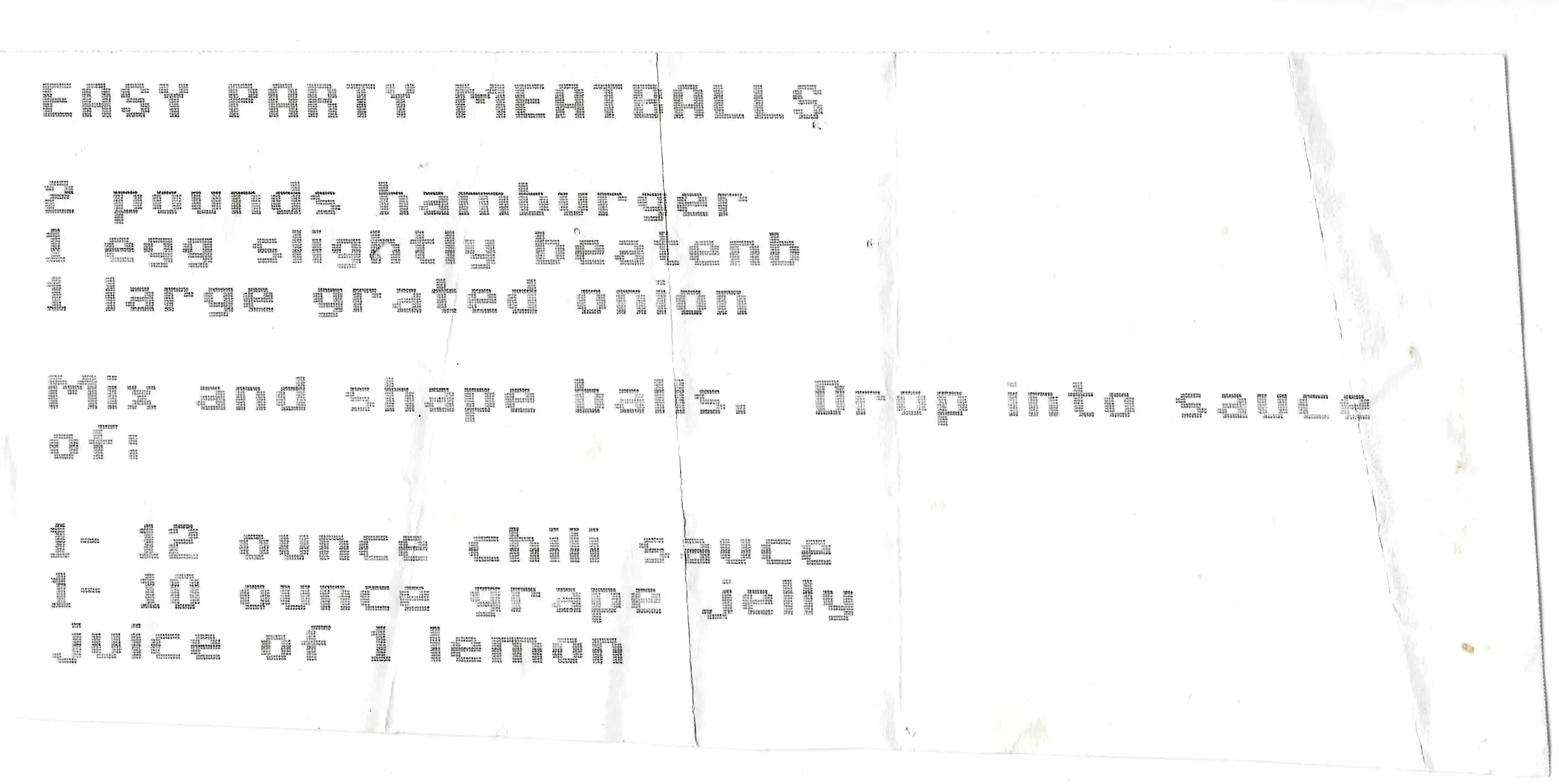 The original recipe card was very brief, only stating to “Mix and shape balls. Drop into sauce.” The detailed instructions above were added based on standard cooking techniques for this dish to provide a complete guide. For a different texture, you can also brown the meatballs in a skillet before adding them to the sauce.