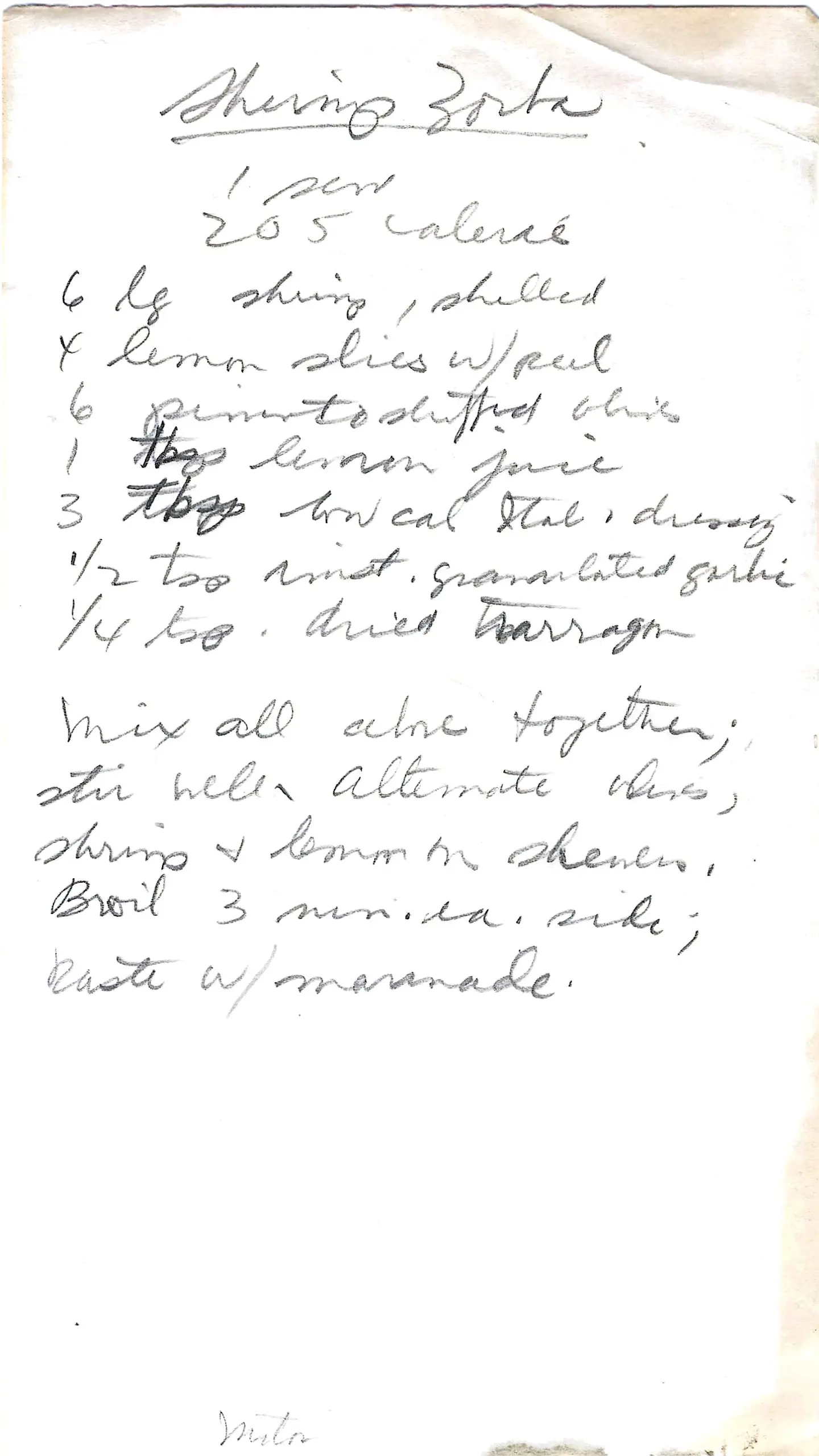 A quick and flavorful recipe for broiled shrimp skewers. Large shrimp, lemon slices, and olives are marinated in a zesty Italian dressing with tarragon and garlic, then broiled to perfection.