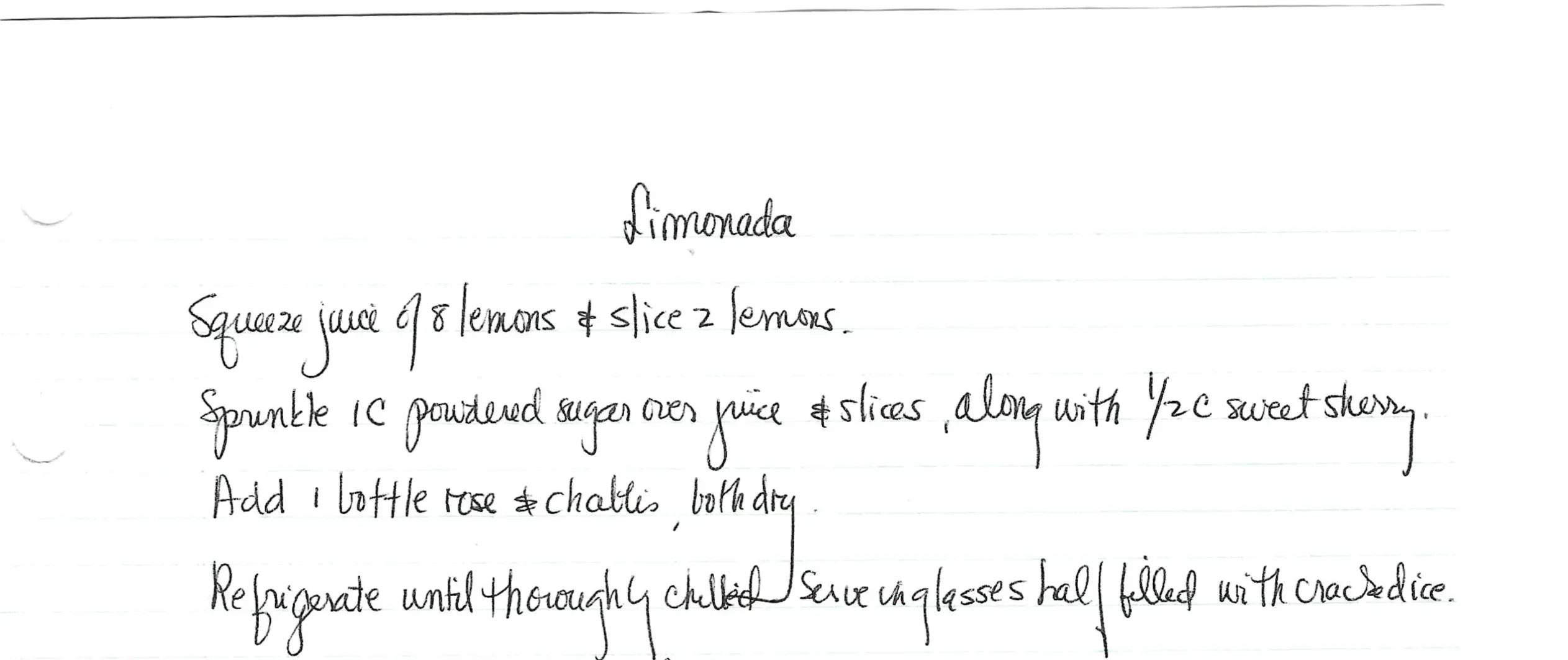 A refreshing and sophisticated party punch, this Limonada combines fresh lemon juice, sweet sherry, and two types of dry wine for a perfectly balanced drink. Serve chilled over ice.