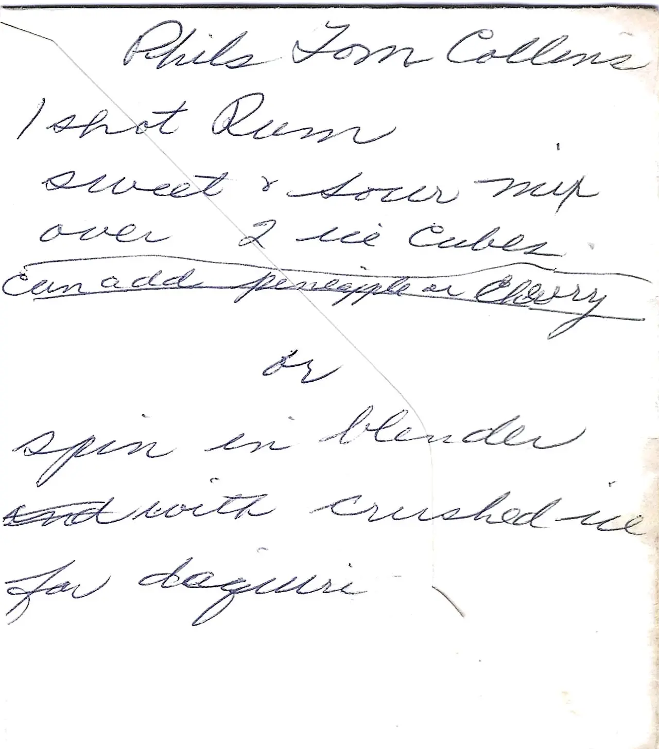 This recipe is titled “Tom Collins,” but its ingredients make it a classic Rum Sour. A traditional Tom Collins is made with gin, lemon juice, sugar, and club soda.