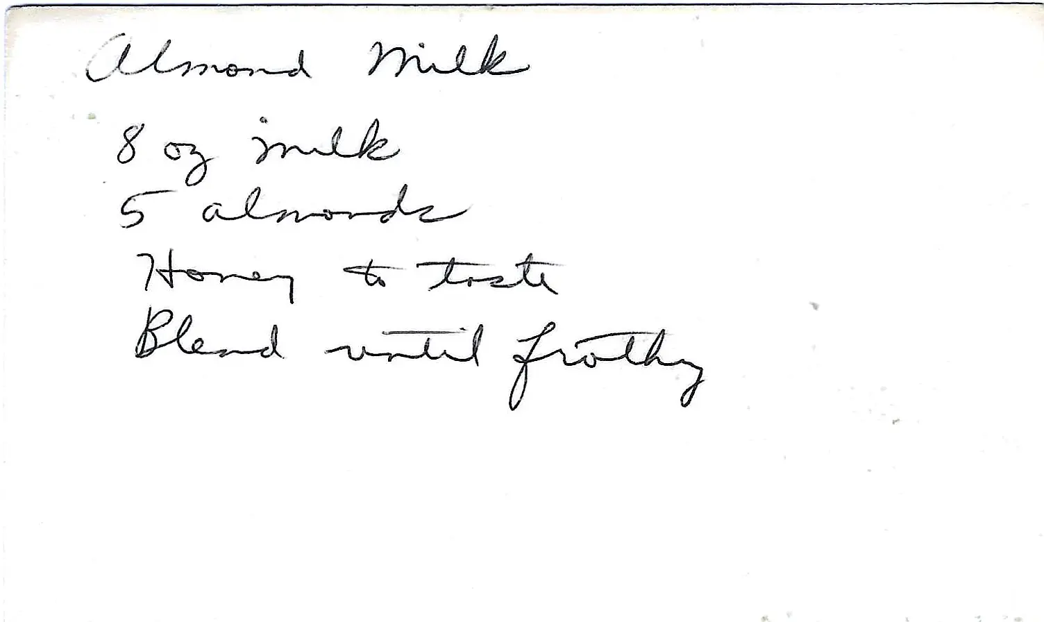 This quick recipe creates a single serving of almond-flavored dairy milk. For traditional, non-dairy almond milk, raw almonds are typically soaked in water, blended, and strained.