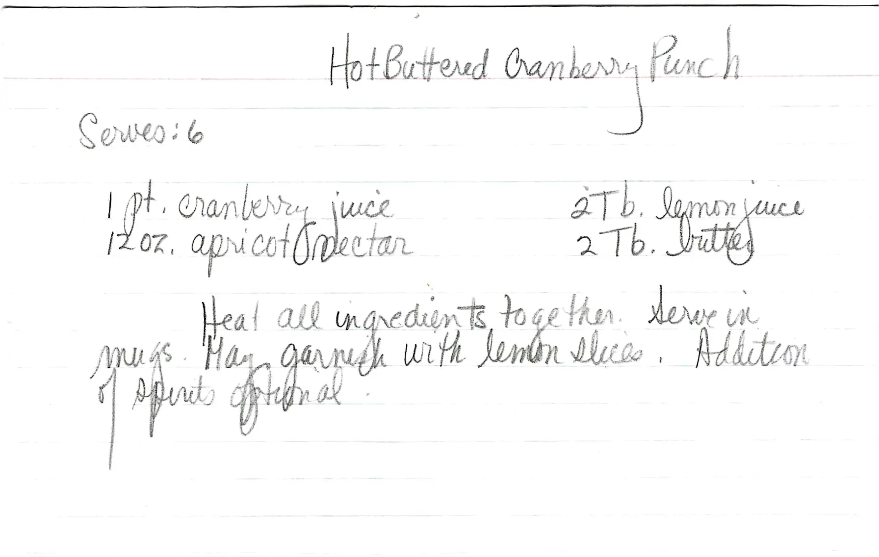 A warm and comforting punch, perfect for the holidays. This simple recipe combines cranberry juice, apricot nectar, and lemon juice, enriched with butter for a smooth, classic flavor.