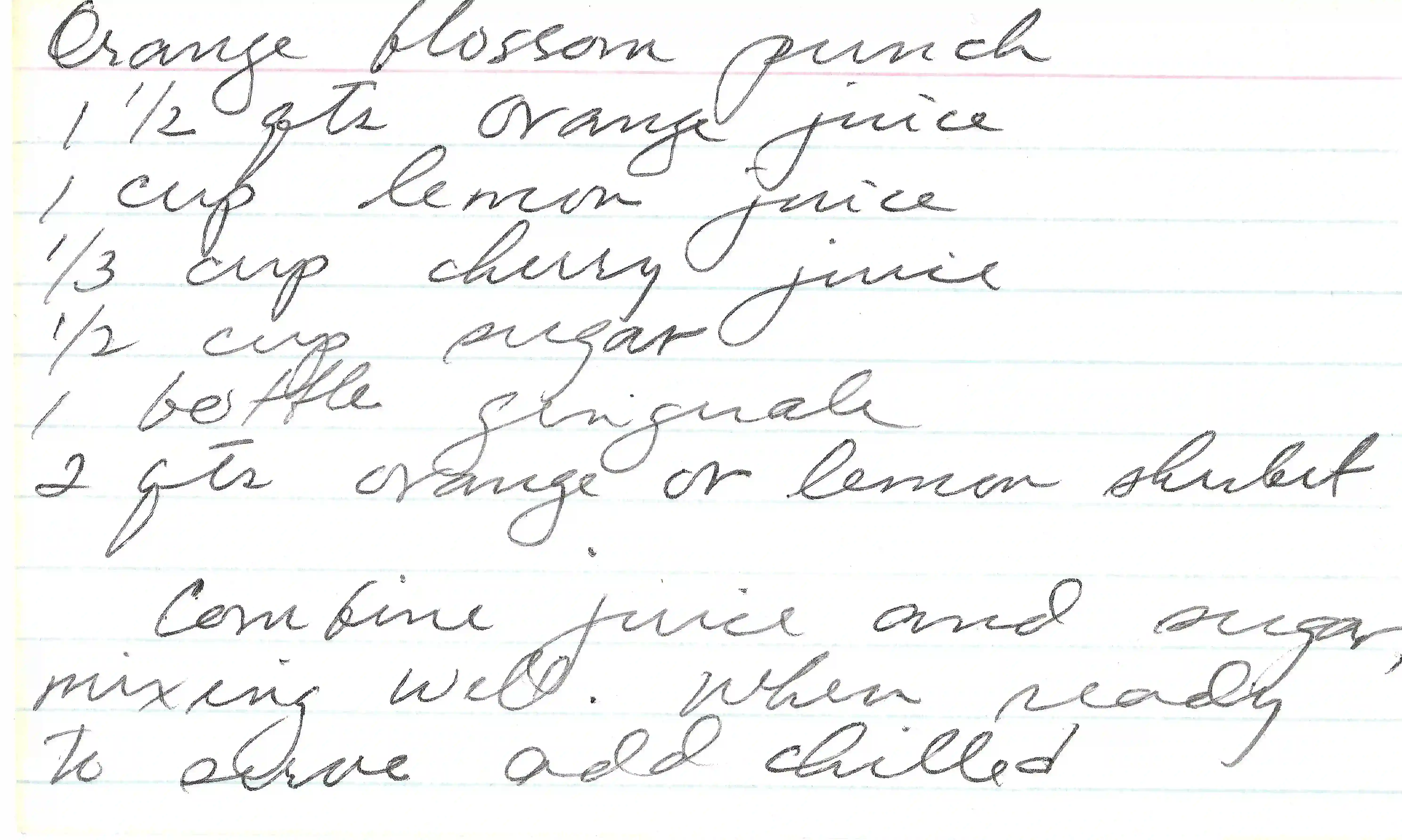 - In a large punch bowl, combine the orange juice, lemon juice, cherry juice, and sugar.