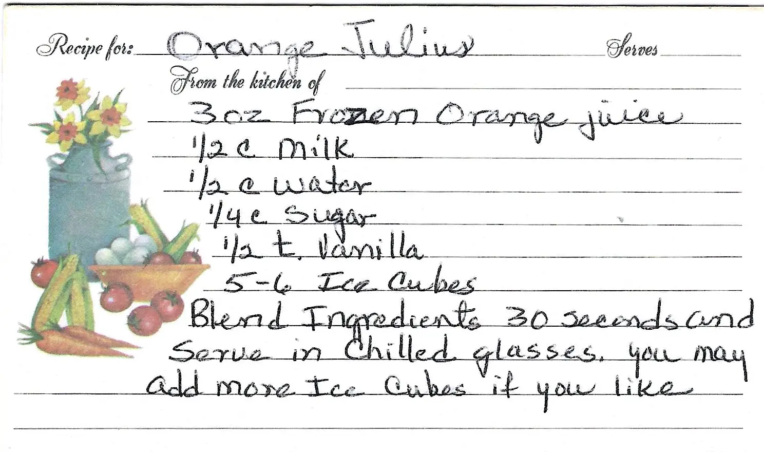 | 3 oz | Frozen Orange Juice concentrate (half a 6-oz can) |