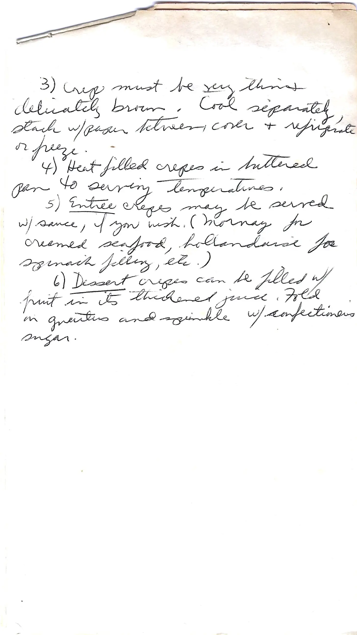 - To serve, place your filling in the crepe, fold, and heat in a buttered pan until warm.