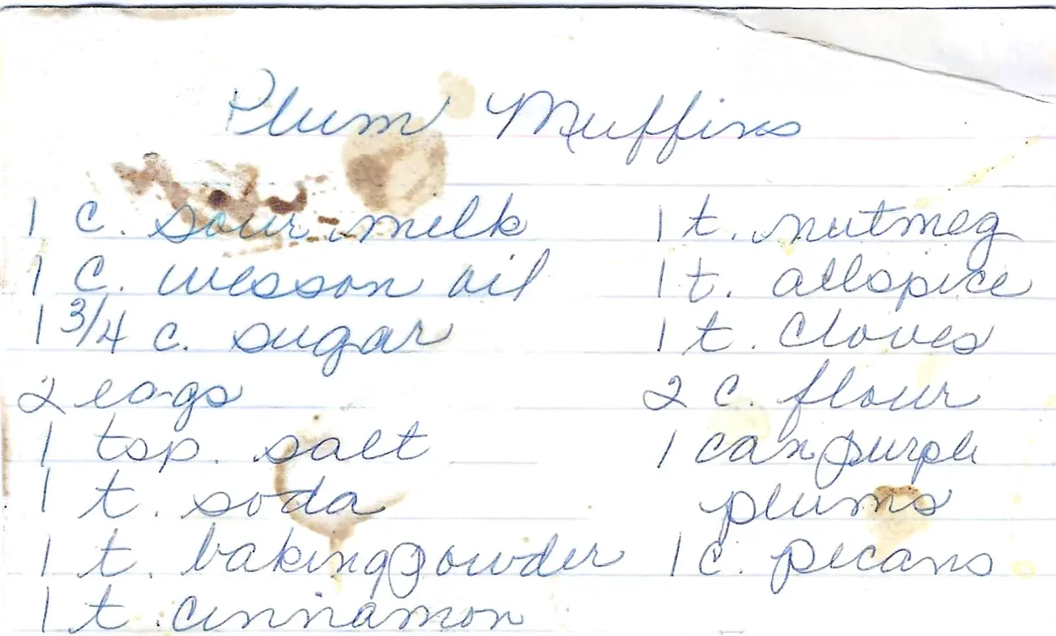 A wonderfully moist and fragrant muffin, packed with warm spices like cinnamon, nutmeg, and cloves, and studded with pieces of sweet purple plums and crunchy pecans.