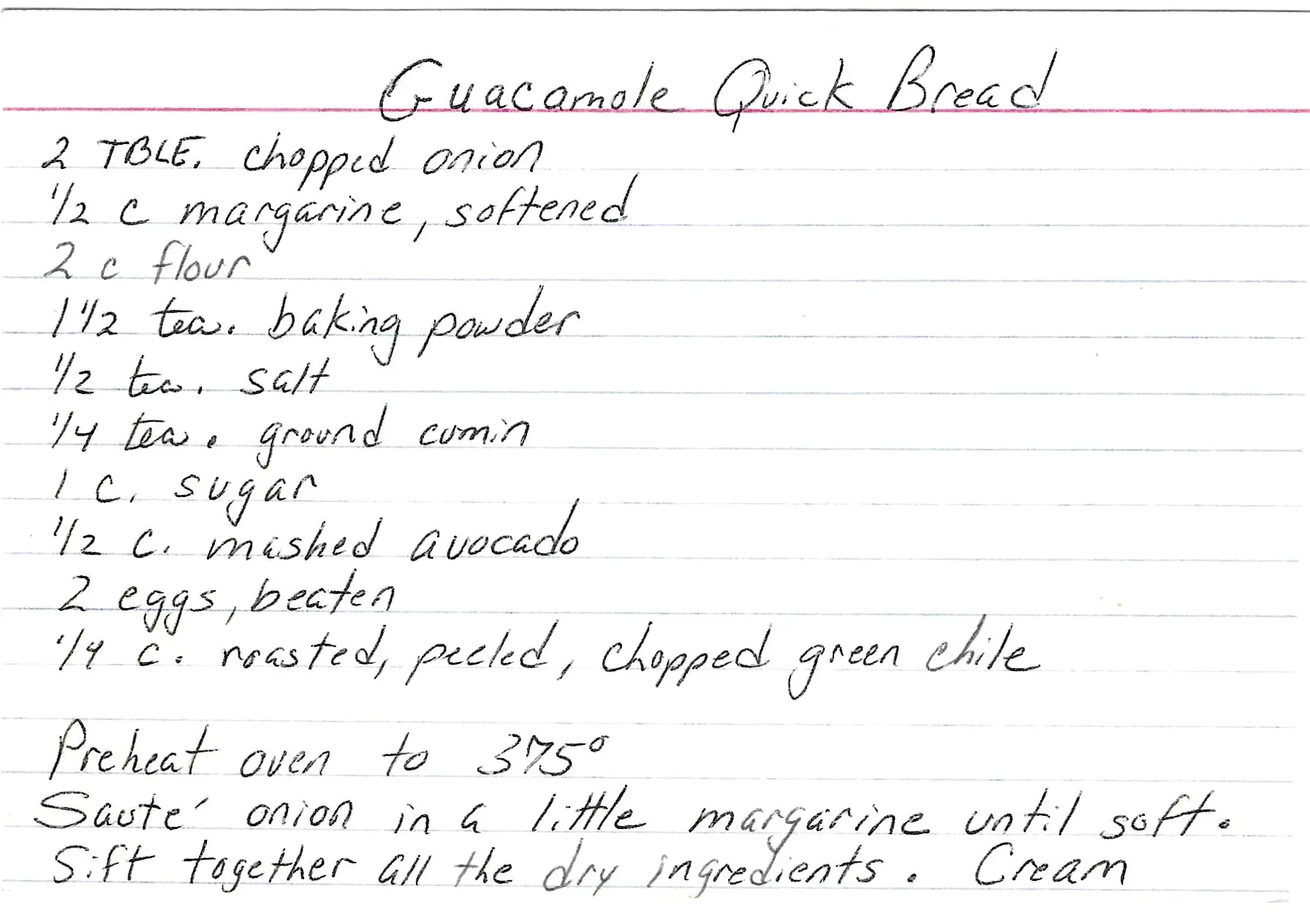 A unique and delicious savory-sweet quick bread with the surprising flavors of guacamole, including mashed avocado, onion, green chile, and cumin.
