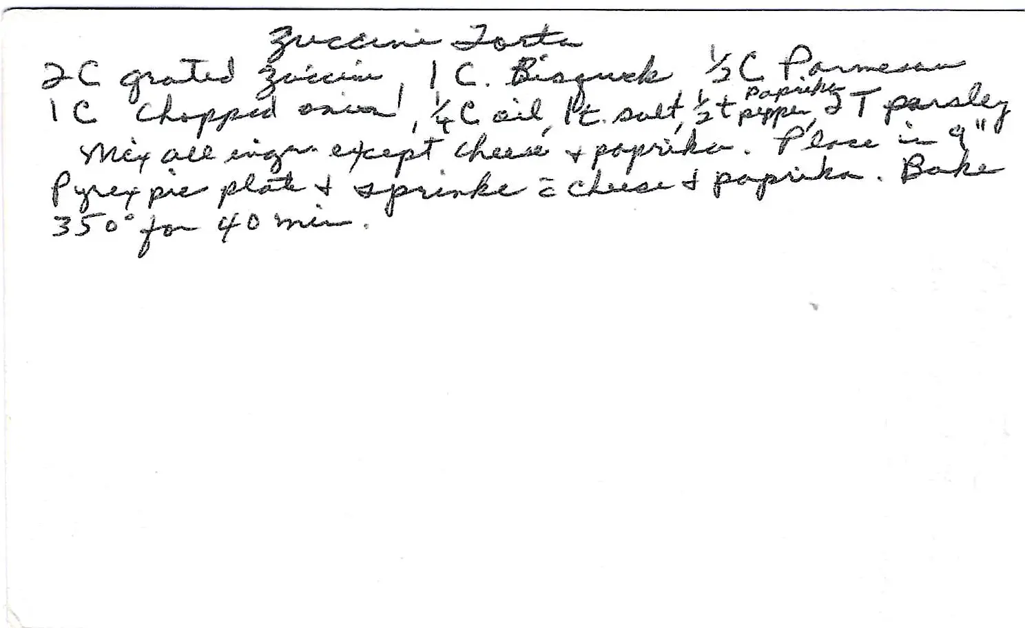 A simple and savory crustless pie, or torta, made with grated zucchini, onion, and Parmesan cheese held together with a Bisquick batter. A perfect appetizer, side dish, or light lunch.