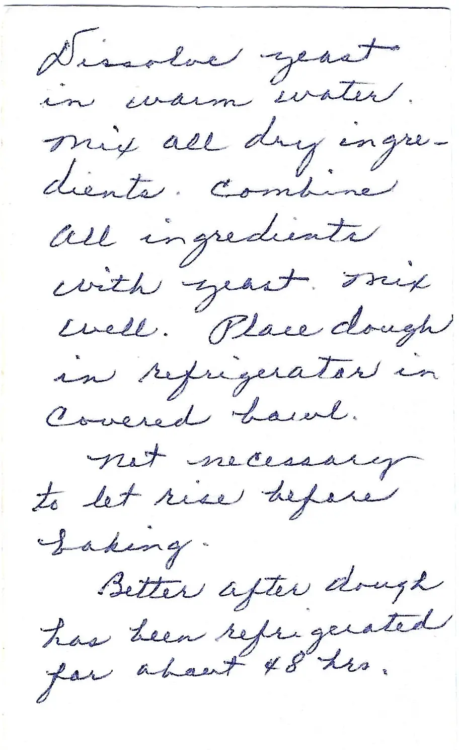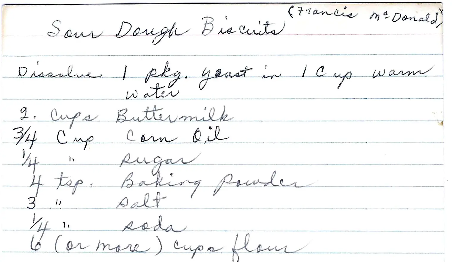 A unique refrigerator biscuit recipe from Francis McDonald and Lois. This dough uses yeast and a long chilling time (up to 48 hours) to develop a delicious, tangy flavor reminiscent of sourdough.