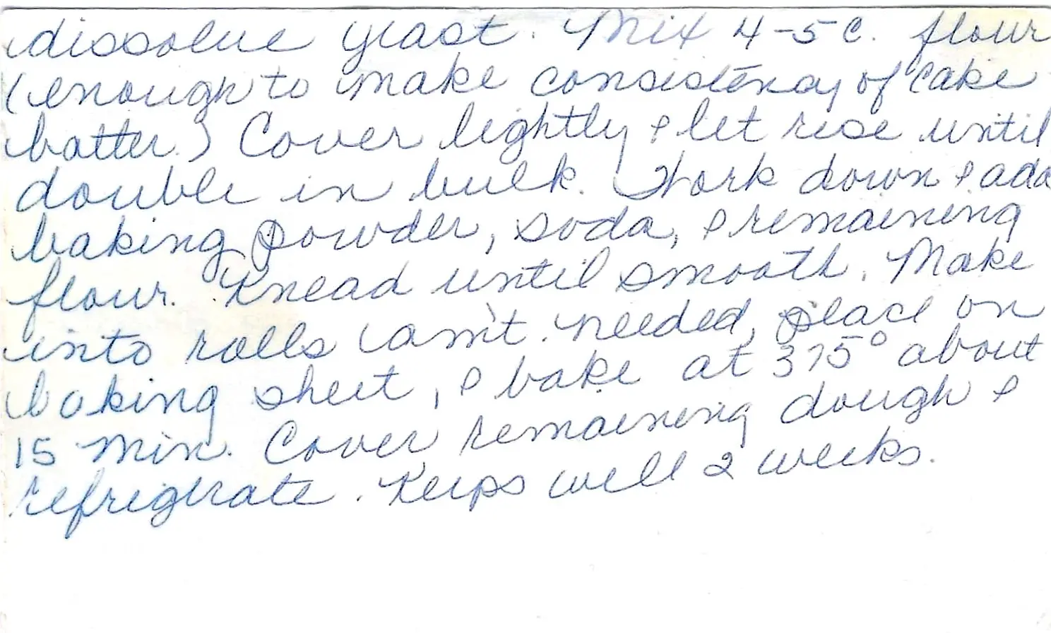 - Place the kneaded dough in a large, greased bowl, cover tightly, and store in the refrigerator for up to 2 weeks. When ready to bake, pinch off dough, shape into rolls, let rise for 30-60 minutes, and bake as directed above.
