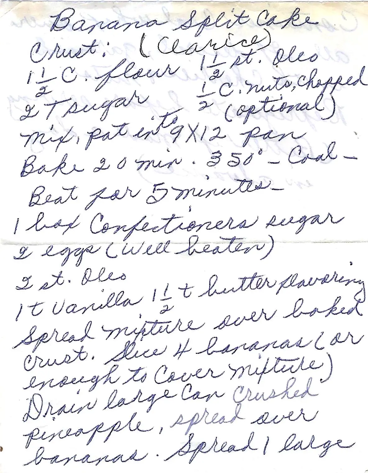 A classic no-bake layered dessert inspired by a banana split, with a buttery crust, a sweet creamy filling, and layers of bananas and pineapple, all topped with whipped cream.