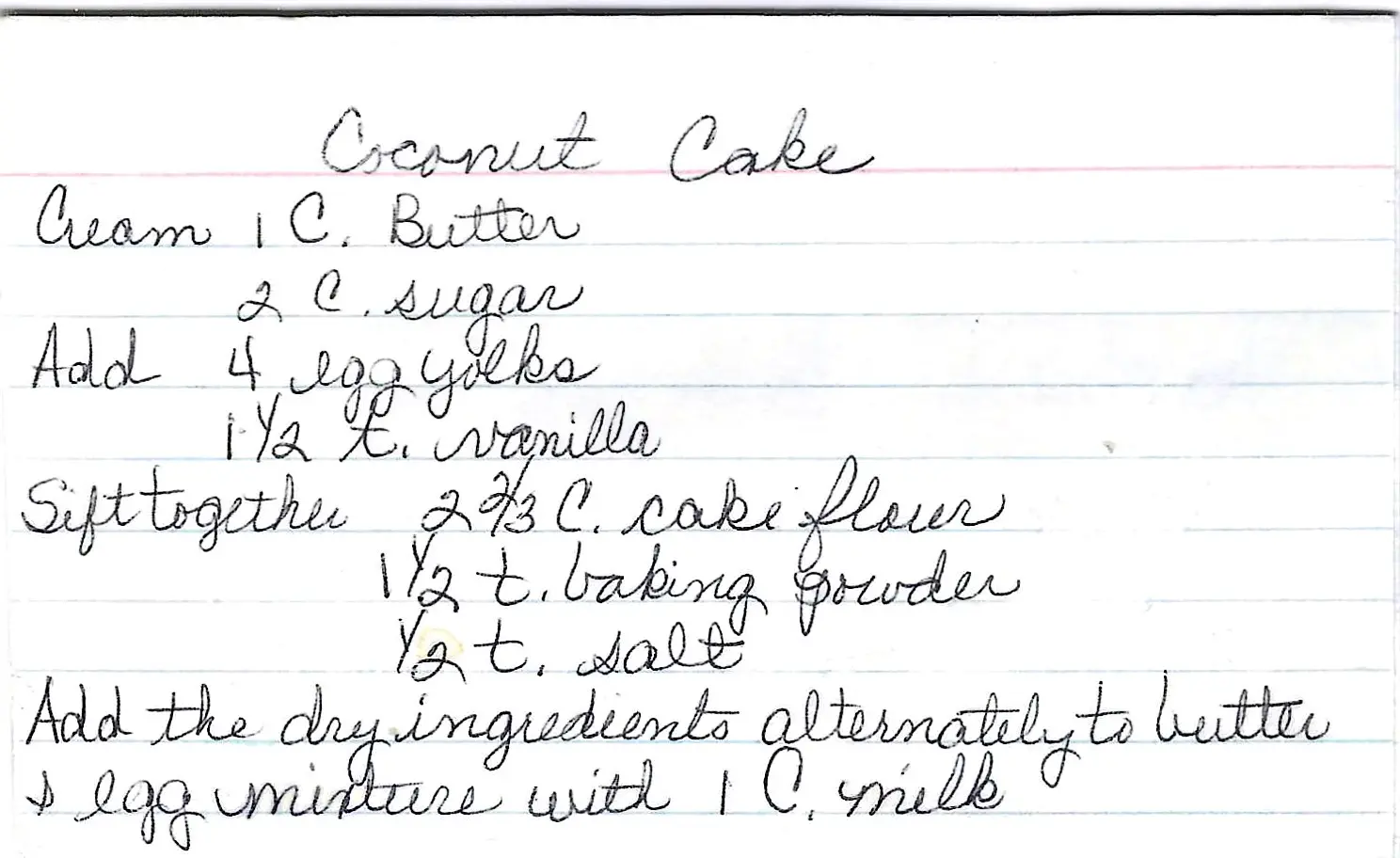 This is a classic white cake recipe, perfect as a base. To make it a “Coconut Cake,” you would typically use a coconut-flavored frosting or filling, such as a seven-minute frosting with shredded coconut mixed in.