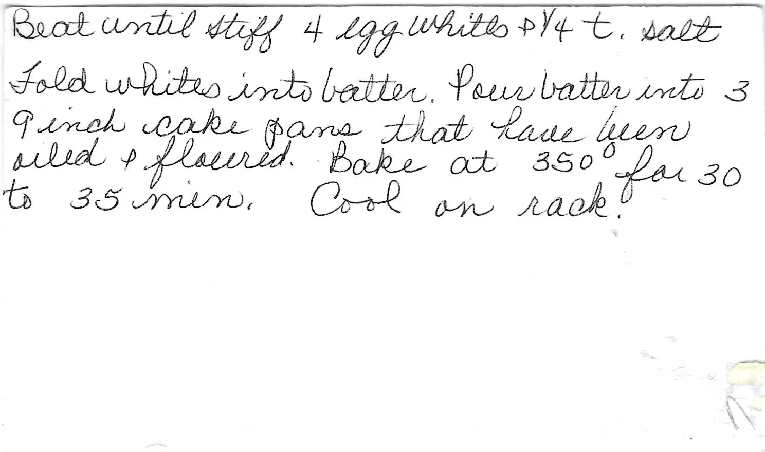 - Gently fold the beaten egg whites into the cake batter in three additions until no white streaks remain.
