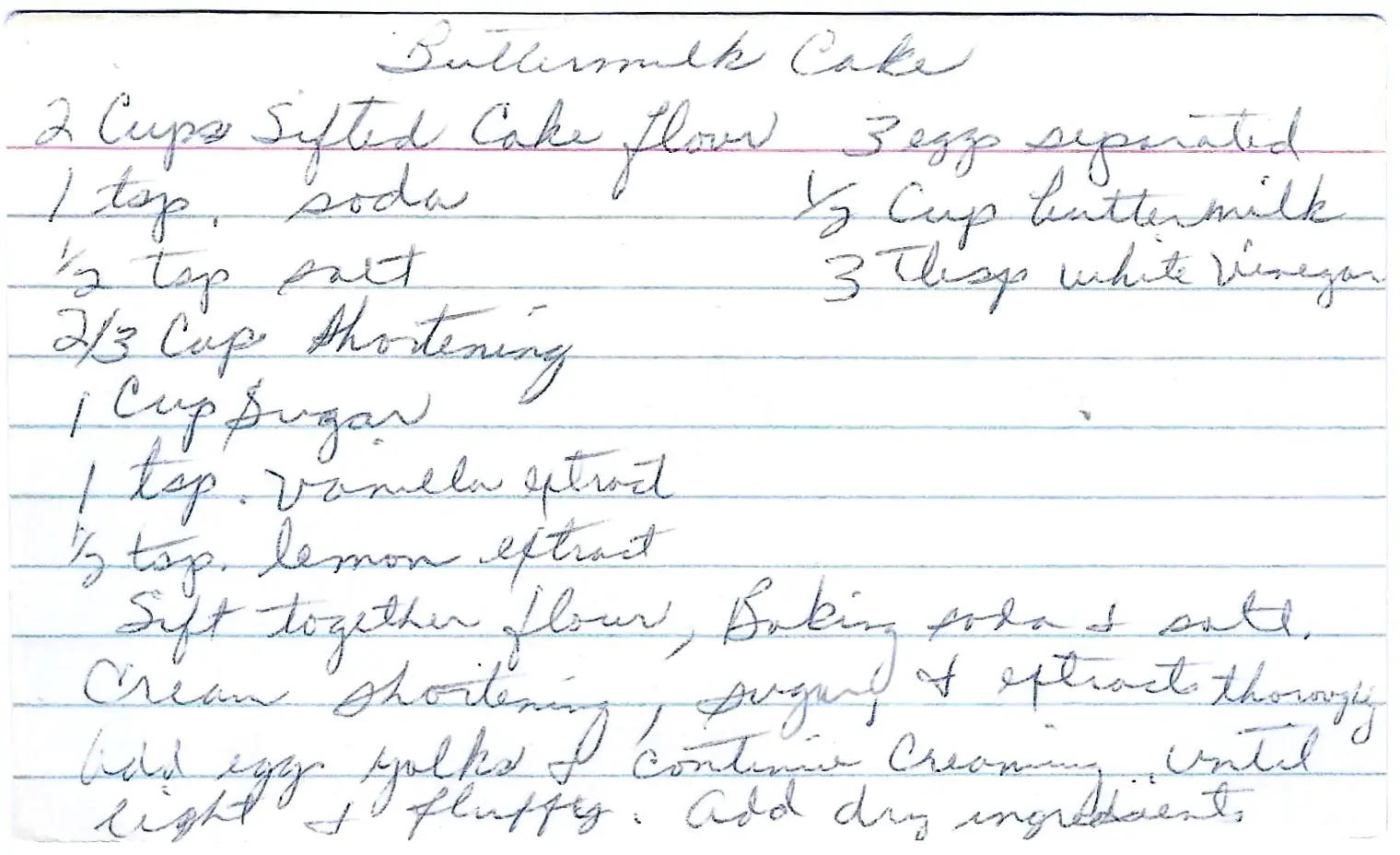 A classic buttermilk cake with a fine, tender crumb. This recipe uses the chemical leavening of buttermilk, vinegar, and baking soda, along with folded egg whites, to create a light and fluffy texture.