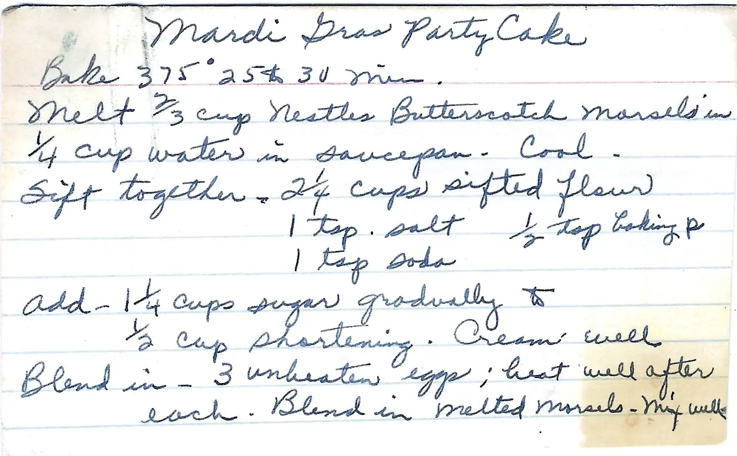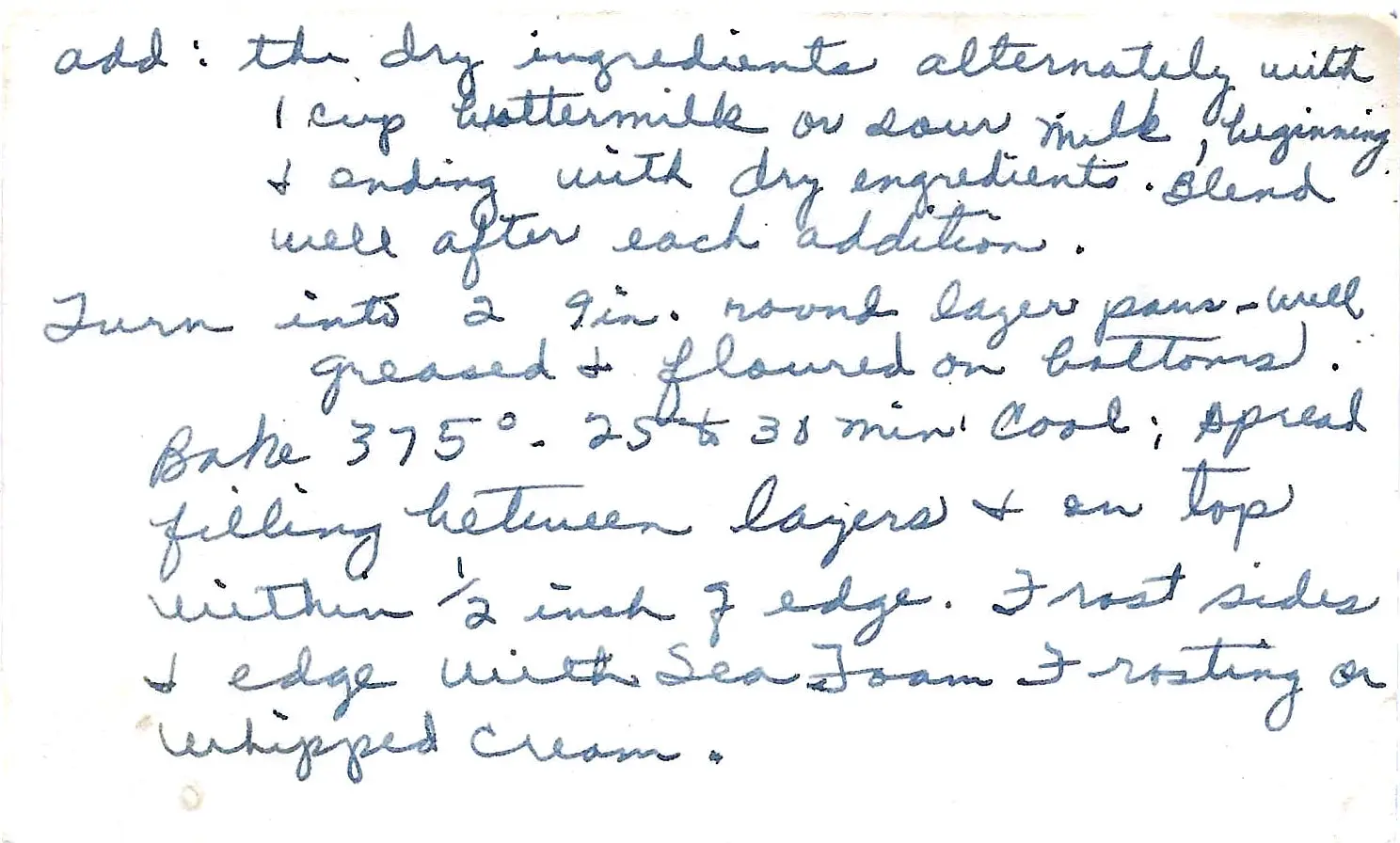 The original recipe card did not list a primary liquid for the batter (like milk or buttermilk). One cup of milk has been added to create a standard, workable cake batter.