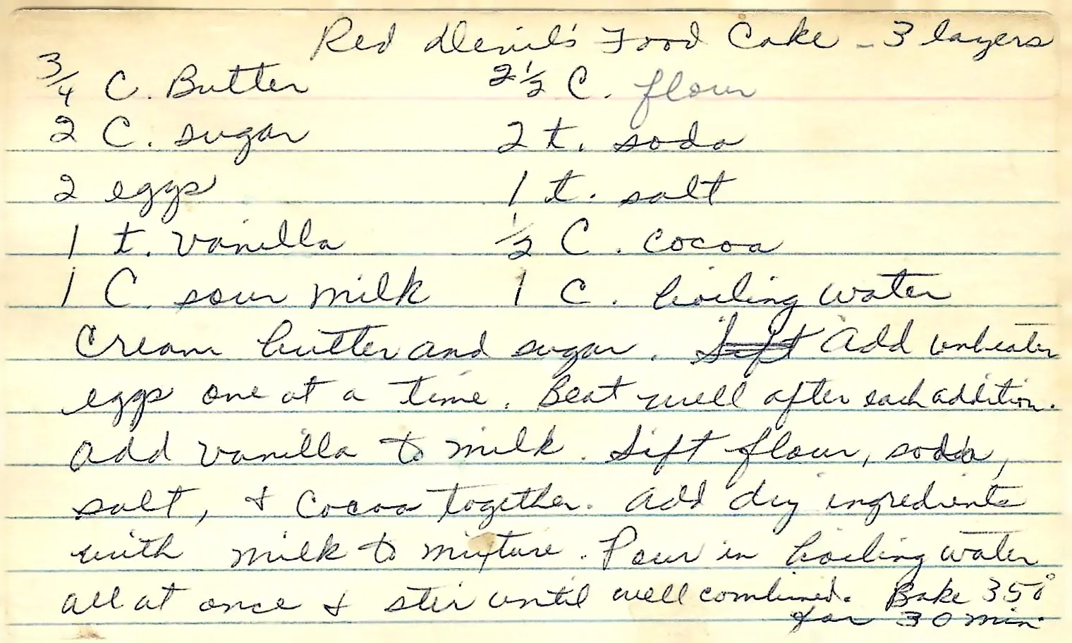 A classic Red Devil’s Food Cake with a rich, moist crumb and deep chocolate flavor. This recipe uses sour milk (buttermilk) and boiling water to create a uniquely tender and iconic cake.
