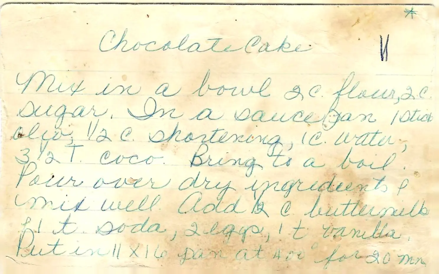 | 1/2 Cup | Buttermilk (“Sour Milk”) |