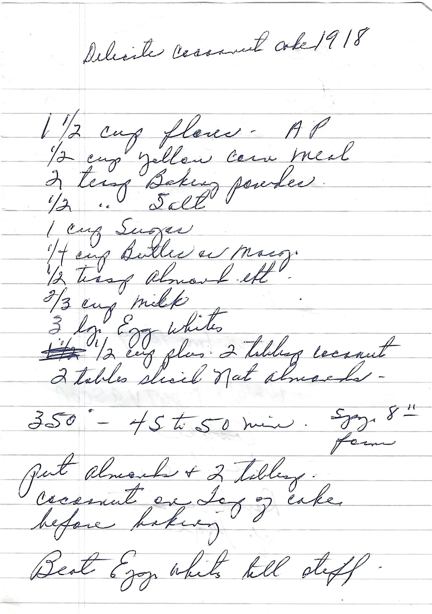 The original recipe card was missing detailed mixing instructions; the steps above are an interpretation of standard baking methods for this type of cake.