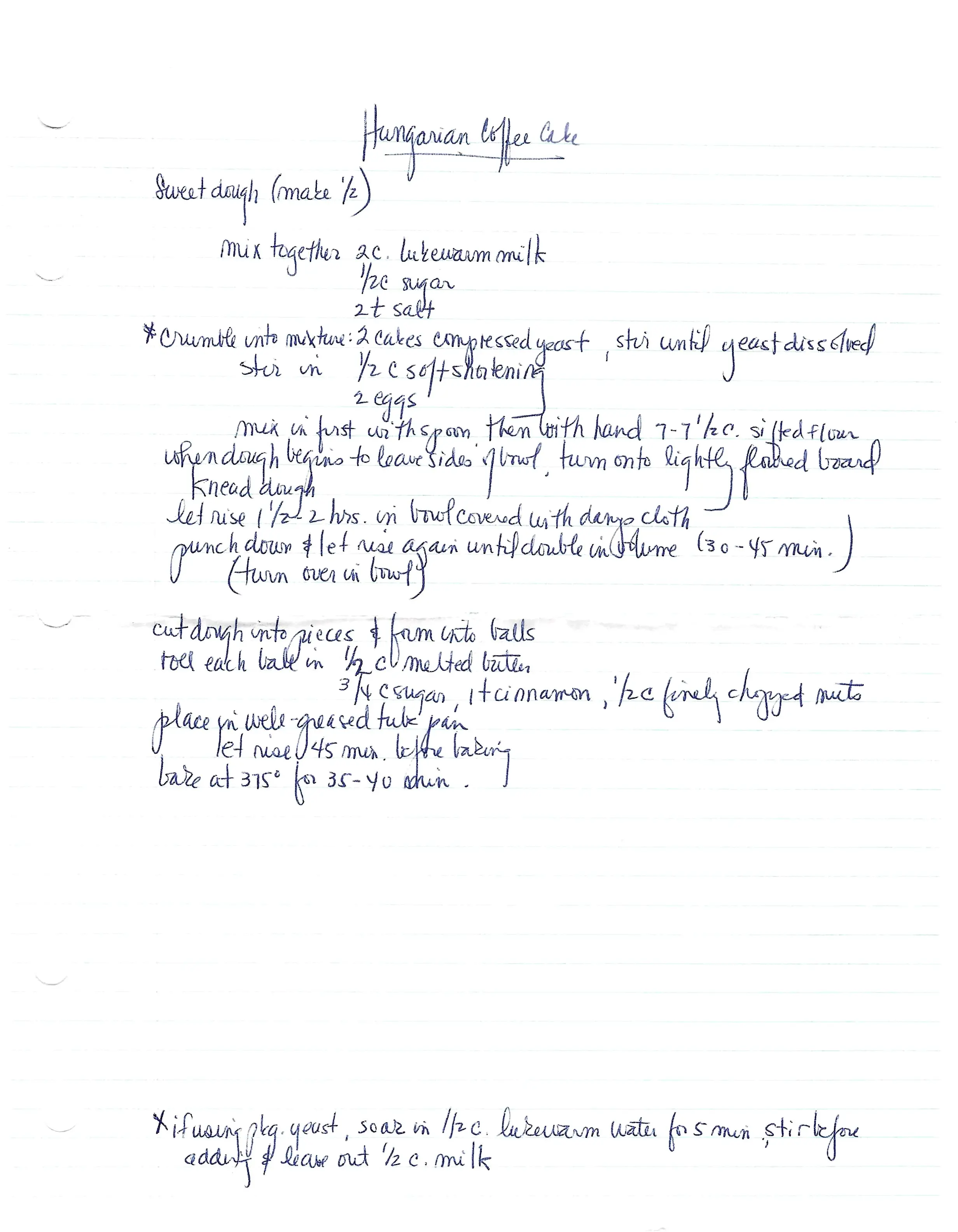 A classic, pull-apart Hungarian coffee cake made from a rich, yeasted sweet dough. Balls of dough are dipped in melted butter and a cinnamon-sugar-nut mixture, then layered in a tube pan and baked into a gooey, delightful treat.