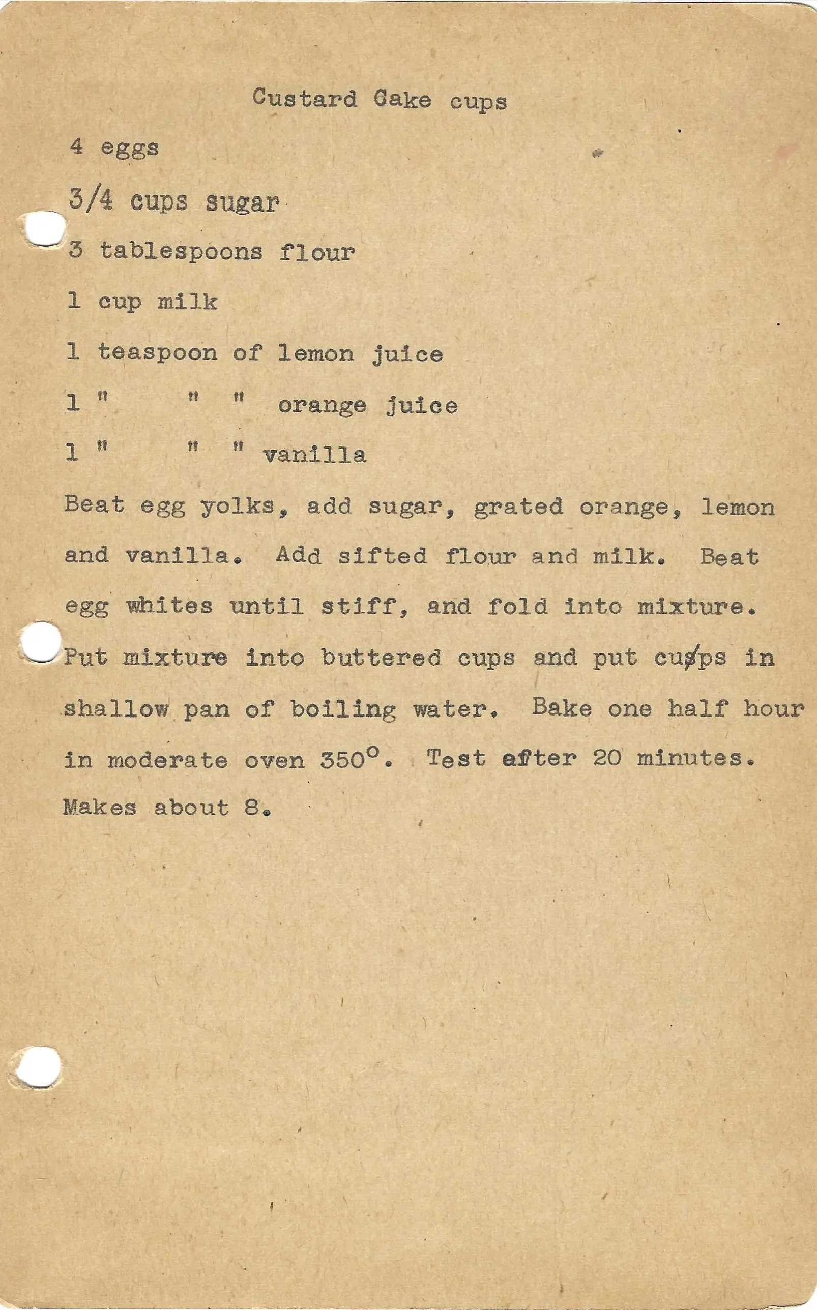This recipe makes about 8 individual custard cups. The magic of this dessert is that the batter separates during baking, creating a custard layer on the bottom and a sponge cake layer on top.