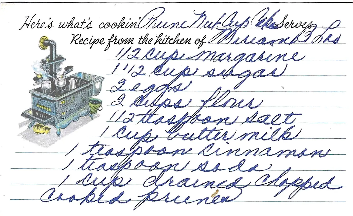 | 1 Cup | Drained, Chopped, Cooked Prunes |