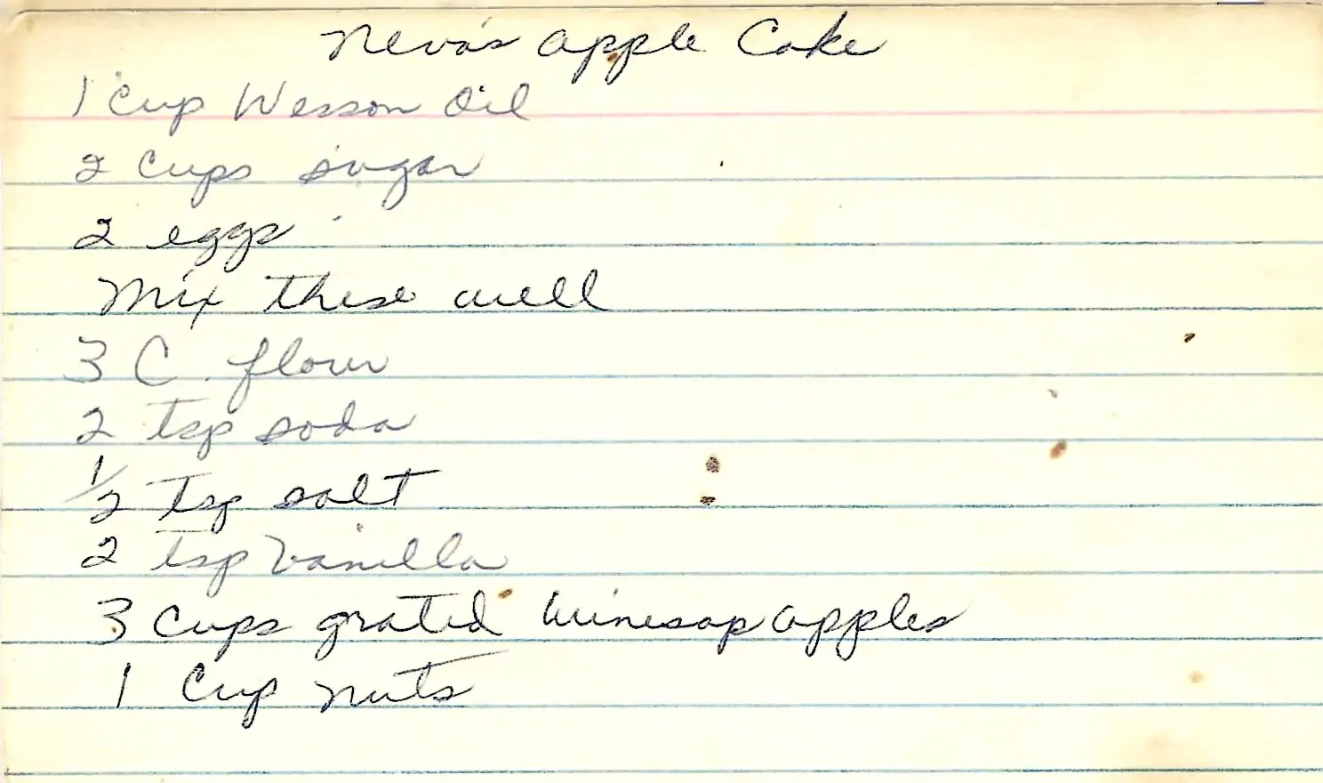 A wonderfully moist and dense apple cake from a recipe by Neva. This simple ‘dump cake’ style recipe is packed with grated Winesap apples and nuts, creating a rich and flavorful dessert.