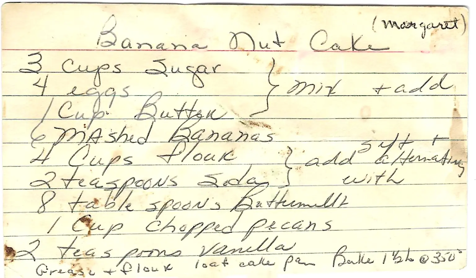 A rich, moist, and large-batch banana nut cake from a recipe by Margaret. This dense cake is loaded with six bananas, a cup of pecans, and has a tender crumb thanks to buttermilk.