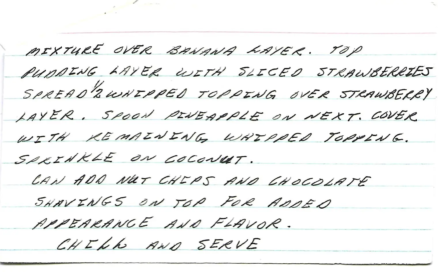 | 1 large container | Whipped Topping (e.g., Cool Whip) |