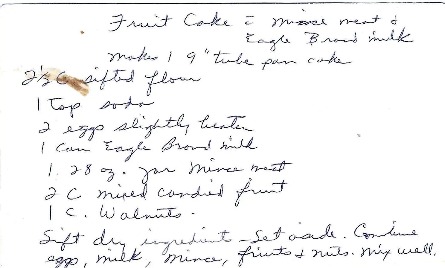 An incredibly simple and moist fruitcake that uses the convenience of prepared mincemeat and sweetened condensed milk. This “dump cake” style recipe is packed with candied fruit and walnuts.