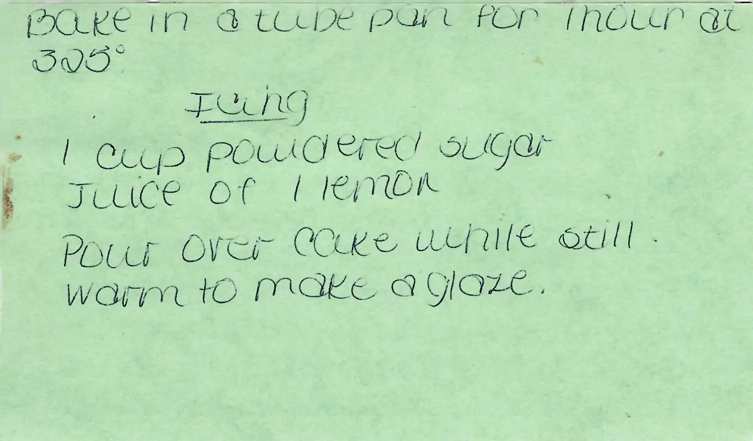 - While the cake is cooling, prepare the icing by whisking together the powdered sugar and lemon juice in a small bowl until smooth.
