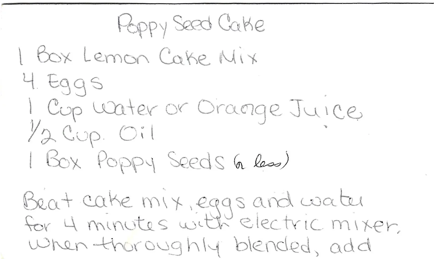 - Add the oil and poppy seeds to the batter. Blend on low speed until just combined.