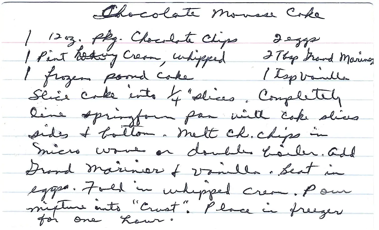This vintage recipe contains raw eggs. Consuming raw or undercooked eggs may increase your risk of foodborne illness. For a safer modern version, use pasteurized eggs or gently cook the egg-chocolate mixture over a double boiler, stirring constantly, until it reaches 160°F before folding in the whipped cream.