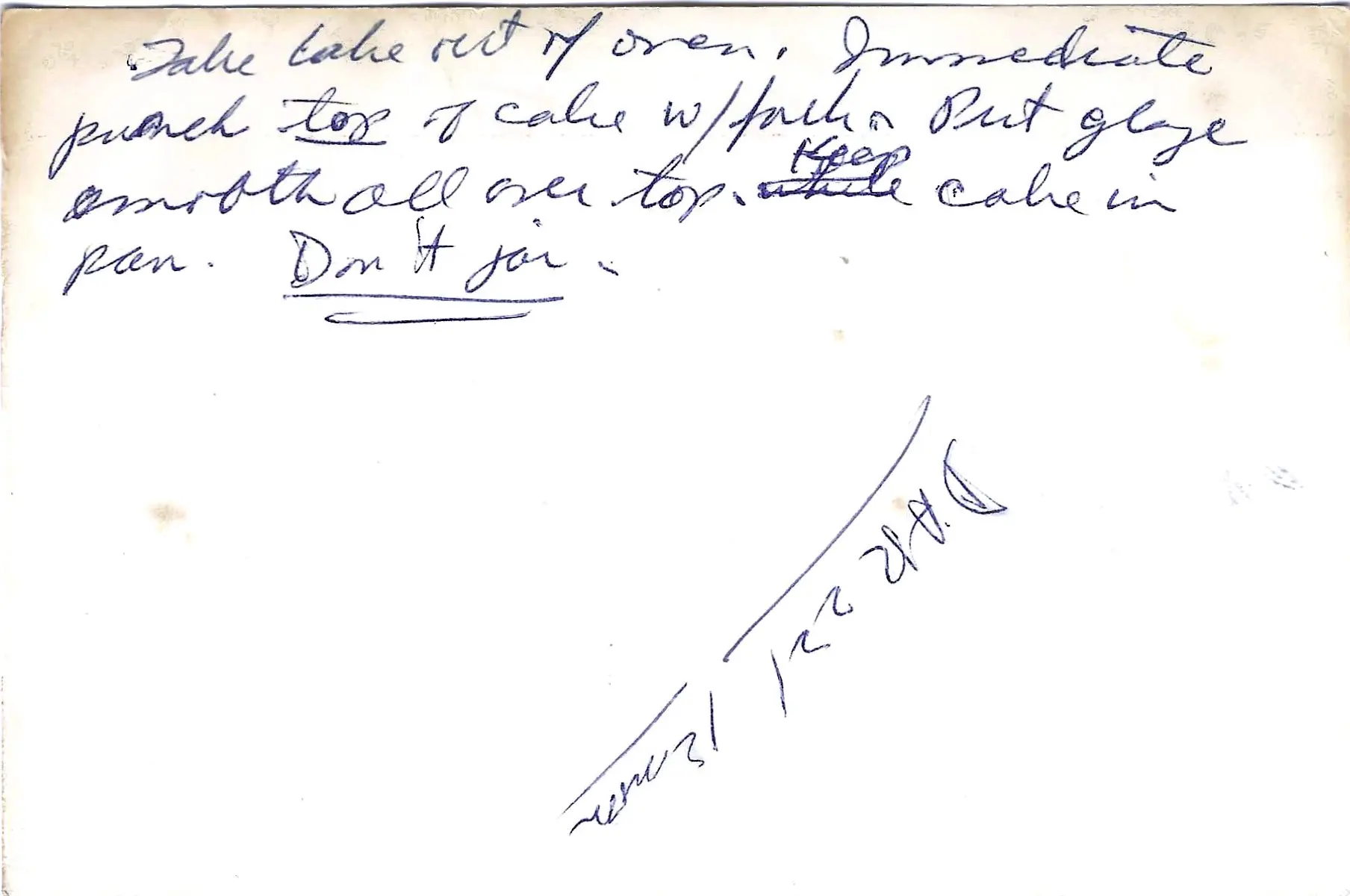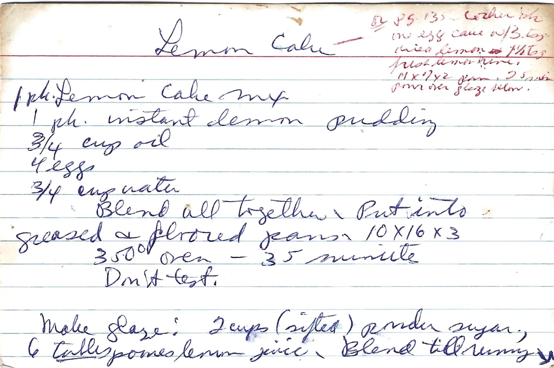 The original card amusingly states “Don’t test” for doneness. The 35-minute bake time is usually very reliable for this type of cake.