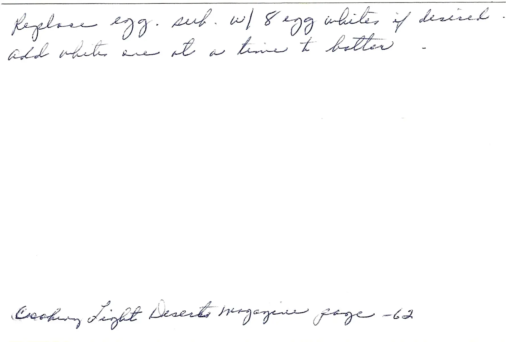 You can replace the egg substitute with 8 egg whites if desired; add the whites one at a time to the batter.