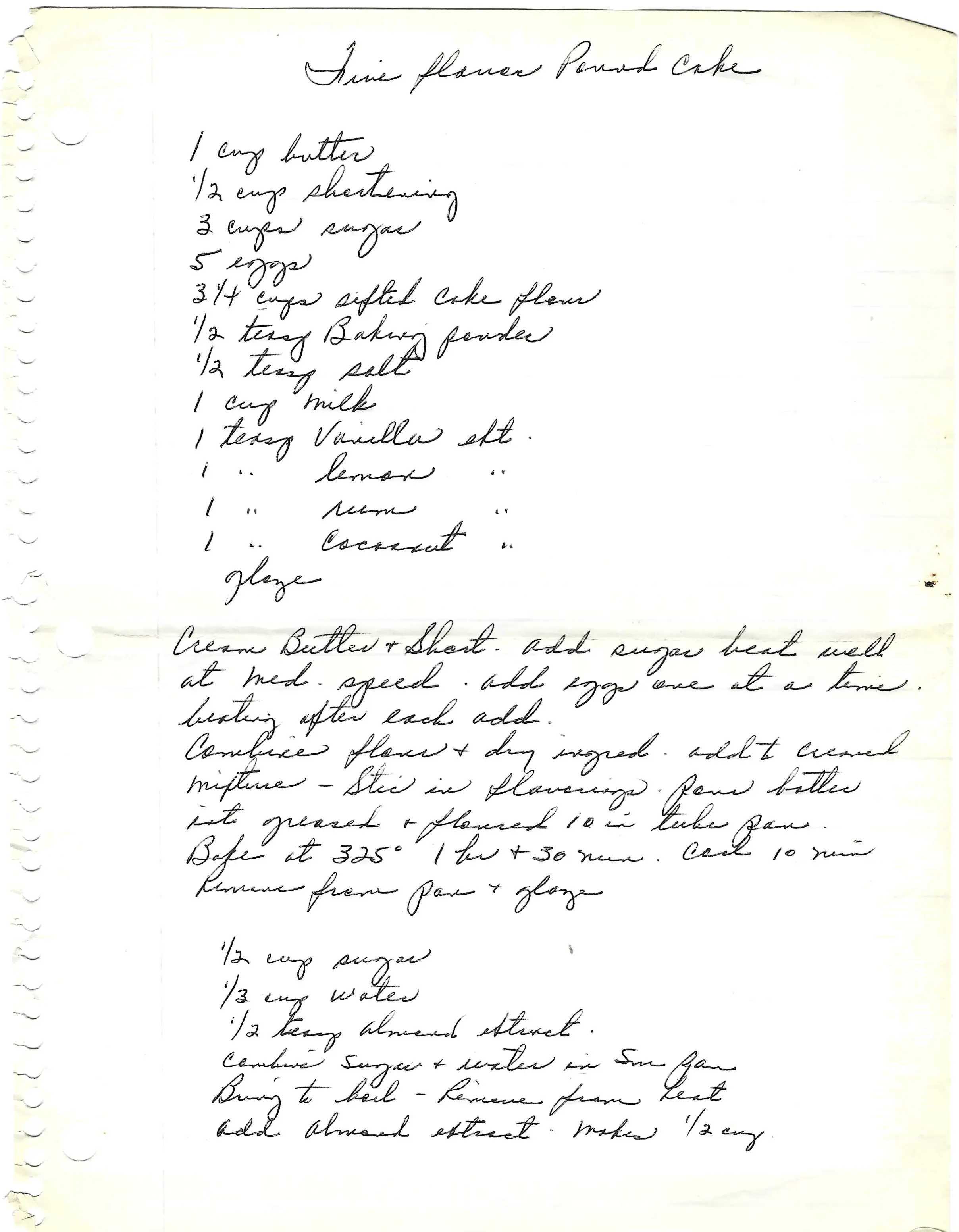 While the recipe card is titled “Sour Cream Pound Cake,” the ingredients list milk instead of sour cream. This recipe creates a classic, rich pound cake.