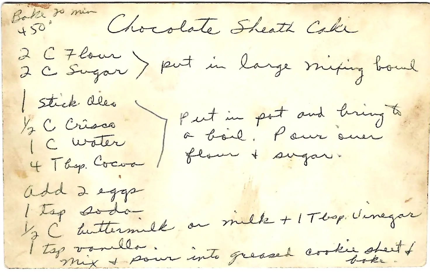 The original recipe card suggests baking at 450°F, which is extremely high for a cake and likely a typo. A more standard temperature for this type of cake is 400°F, which is used in the instructions above.
