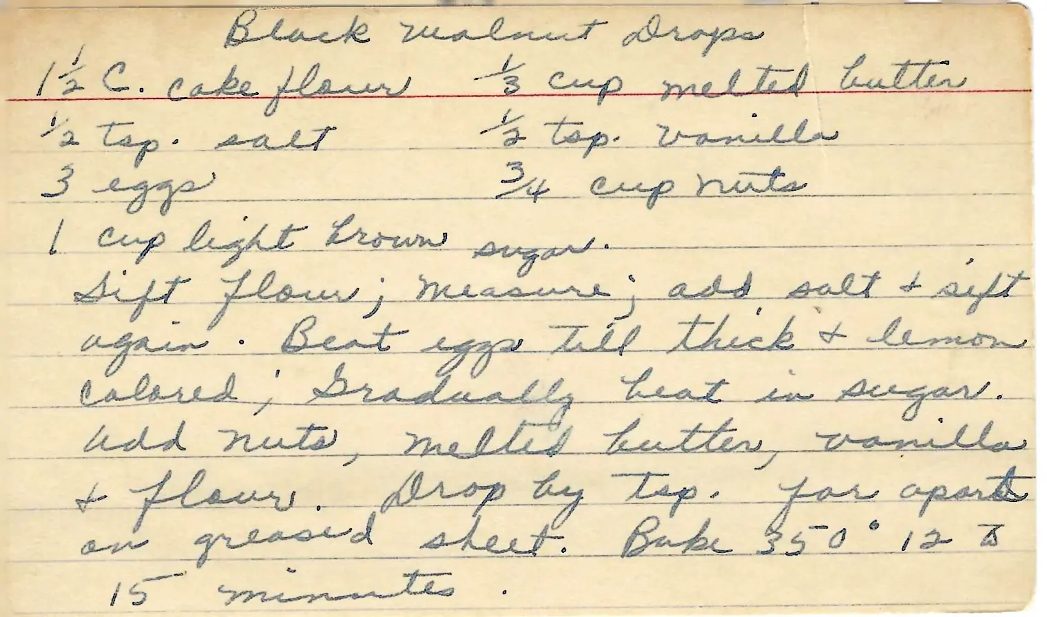 This recipe contains no baking powder or soda. The leavening comes entirely from the well-beaten eggs, which results in a dense, chewy, delicious cookie with a unique cake-like quality.
