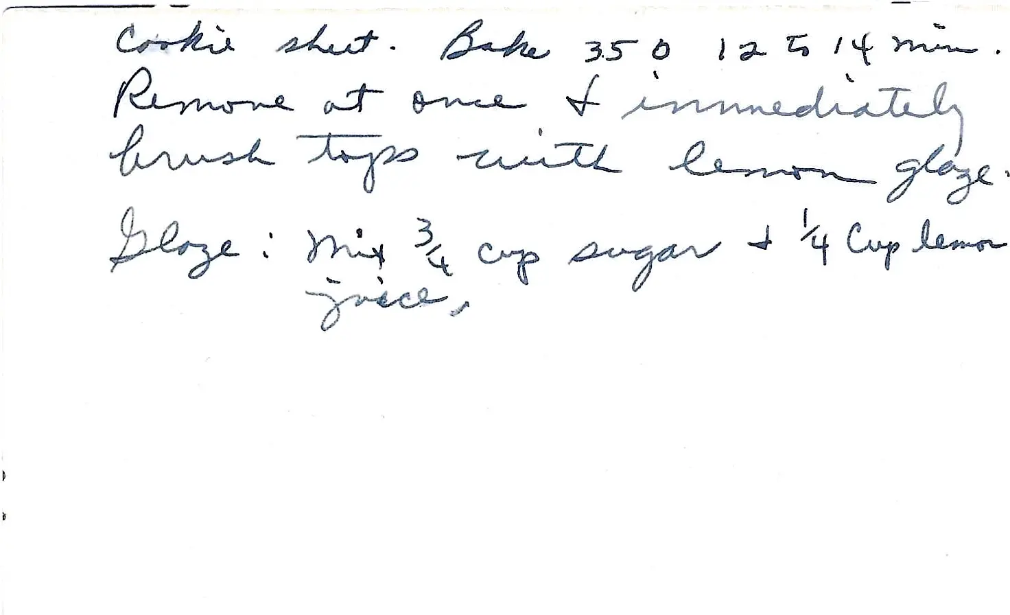 - Glaze: While the tea cakes are baking, mix the ¾ cup of sugar and the lemon juice for the glaze in a small bowl.
