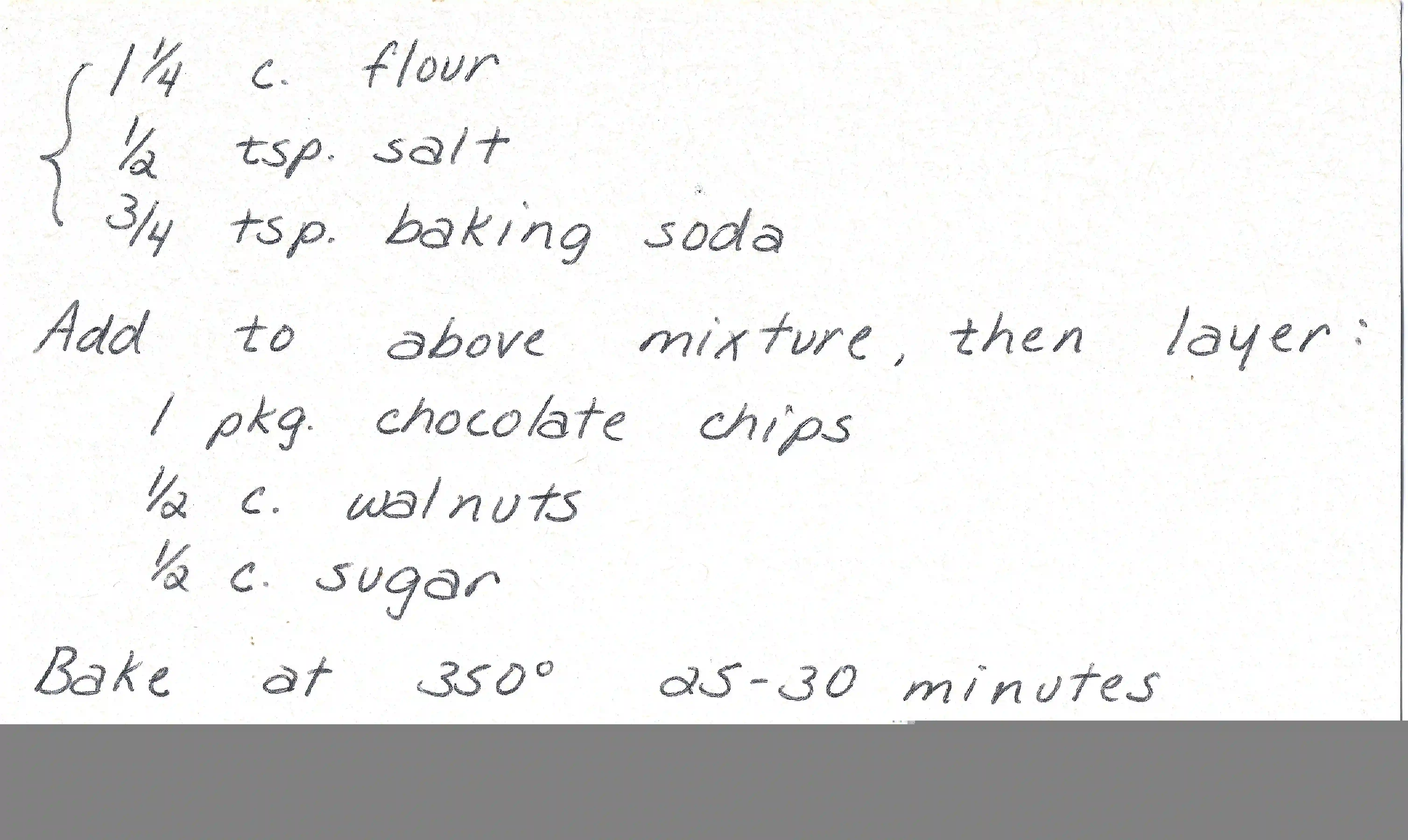 | 1 pkg. (6-12 oz) | Chocolate Chips |