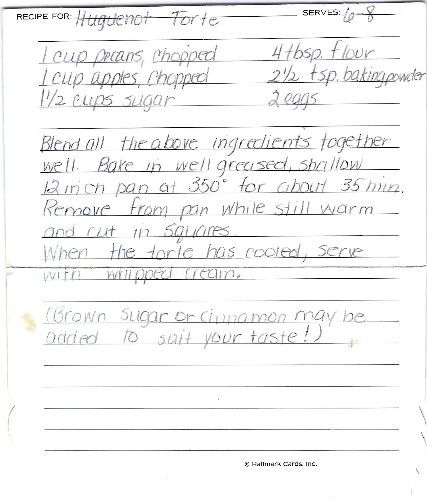 The recipe card suggests that brown sugar or cinnamon may be added to suit your taste!