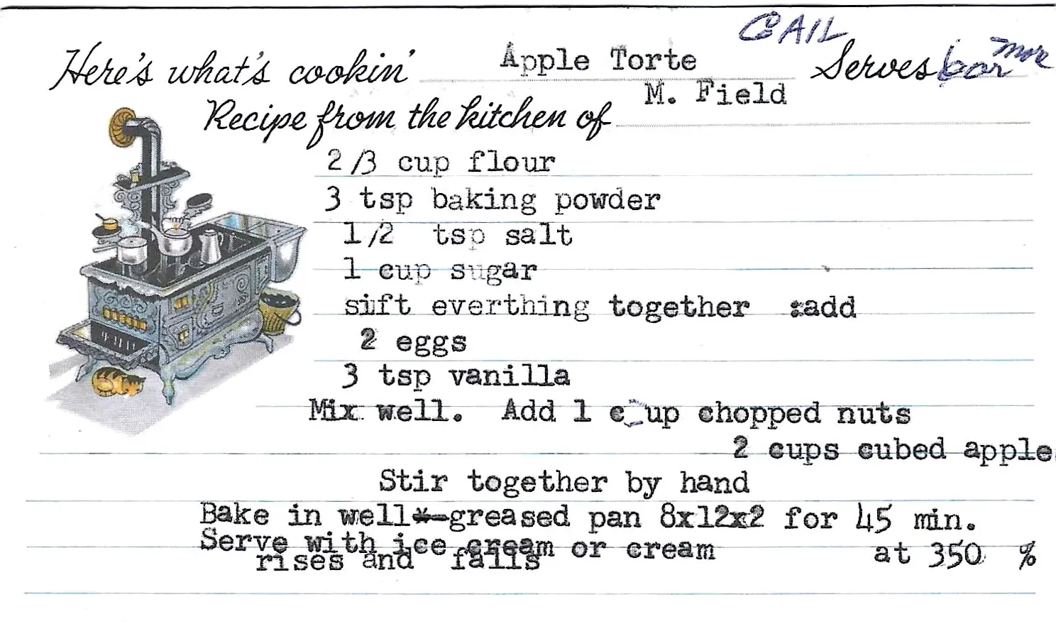 As the original recipe card notes, this torte “rises and falls,” which is a normal and delicious characteristic of this style of dessert, creating a wonderfully crisp top.