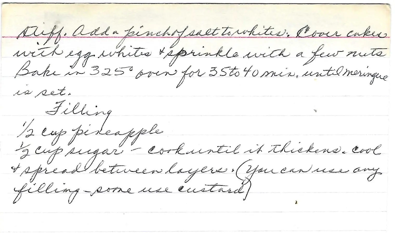 - Assemble the Torte: Carefully remove the cooled cake layers from their pans. Place one layer on a serving plate with the meringue side down. Spread the cooled pineapple filling over the cake layer. Place the second layer on top, with the meringue side up.