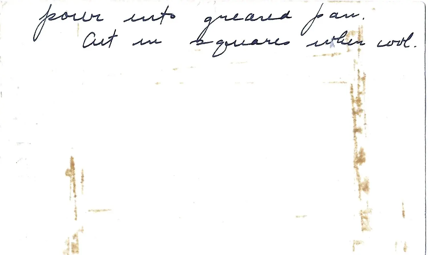 - Pour into greased pan and cut into squares when cool.
