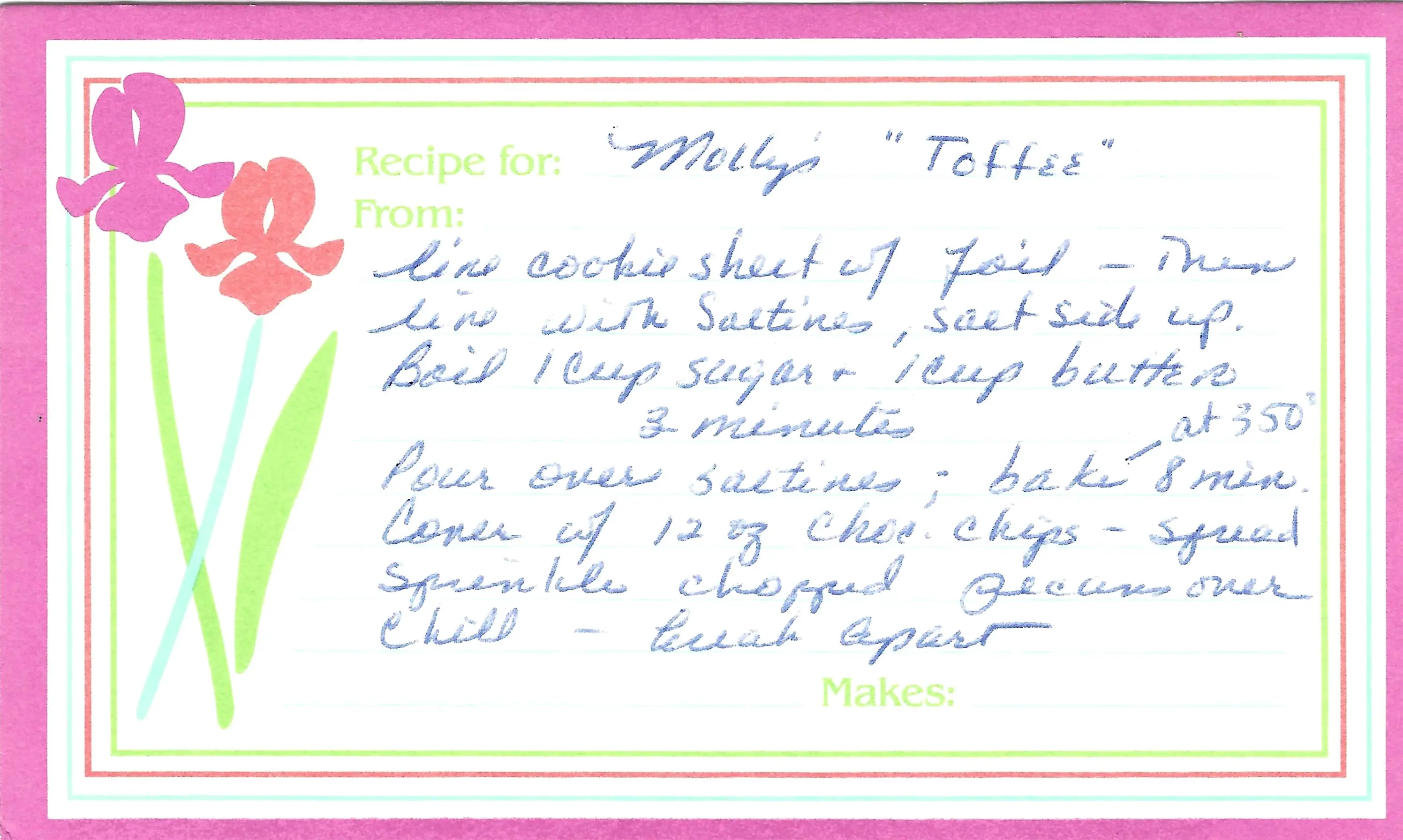 A classic and incredibly addictive recipe from Molly for saltine toffee, also known as “Christmas Crack.” Salty crackers are covered in a boiled butter and sugar toffee, baked, and then topped with melted chocolate and pecans.