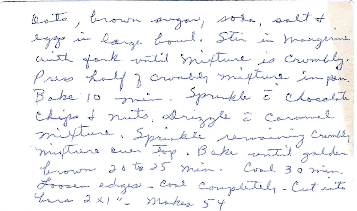 - Make the Oat Mixture: In a large bowl, mix the flour, oats, brown sugar, baking soda, and salt. Add the softened margarine and the egg. Stir with a fork or pastry blender until the mixture is crumbly.