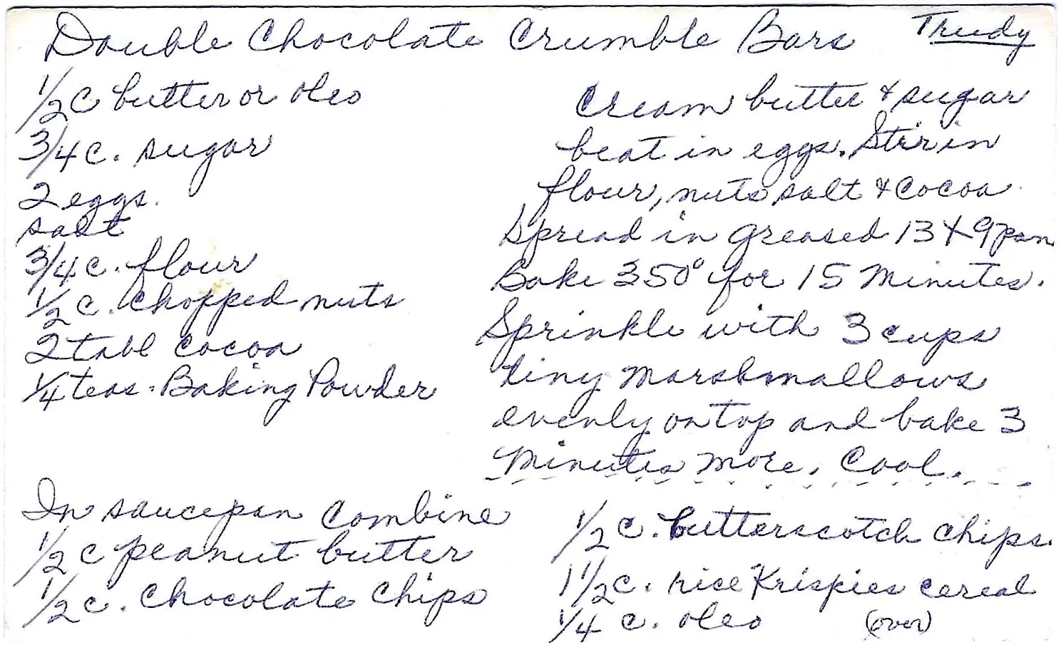 A decadent multi-layered bar cookie from a recipe by Trudy. A rich, brownie-like base is topped with a layer of melted marshmallows and finished with a crunchy topping of chocolate, peanut butter, butterscotch, and Rice Krispies.