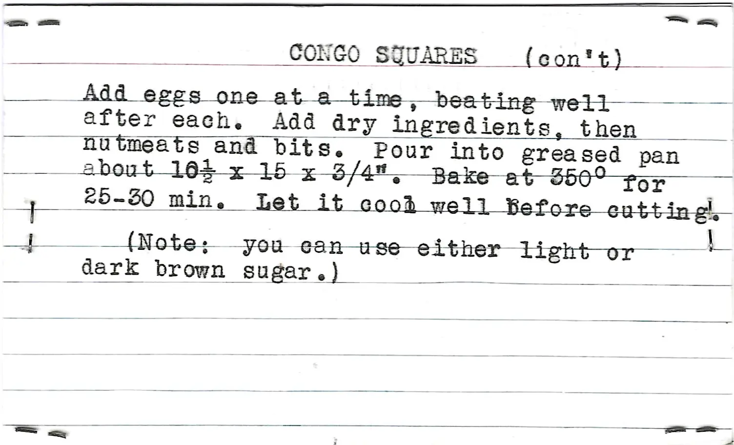 A classic recipe for Congo Squares, a rich and chewy blondie bar packed with brown sugar, chocolate chips, and nuts. This simple, one-pan dessert is perfect for a crowd.