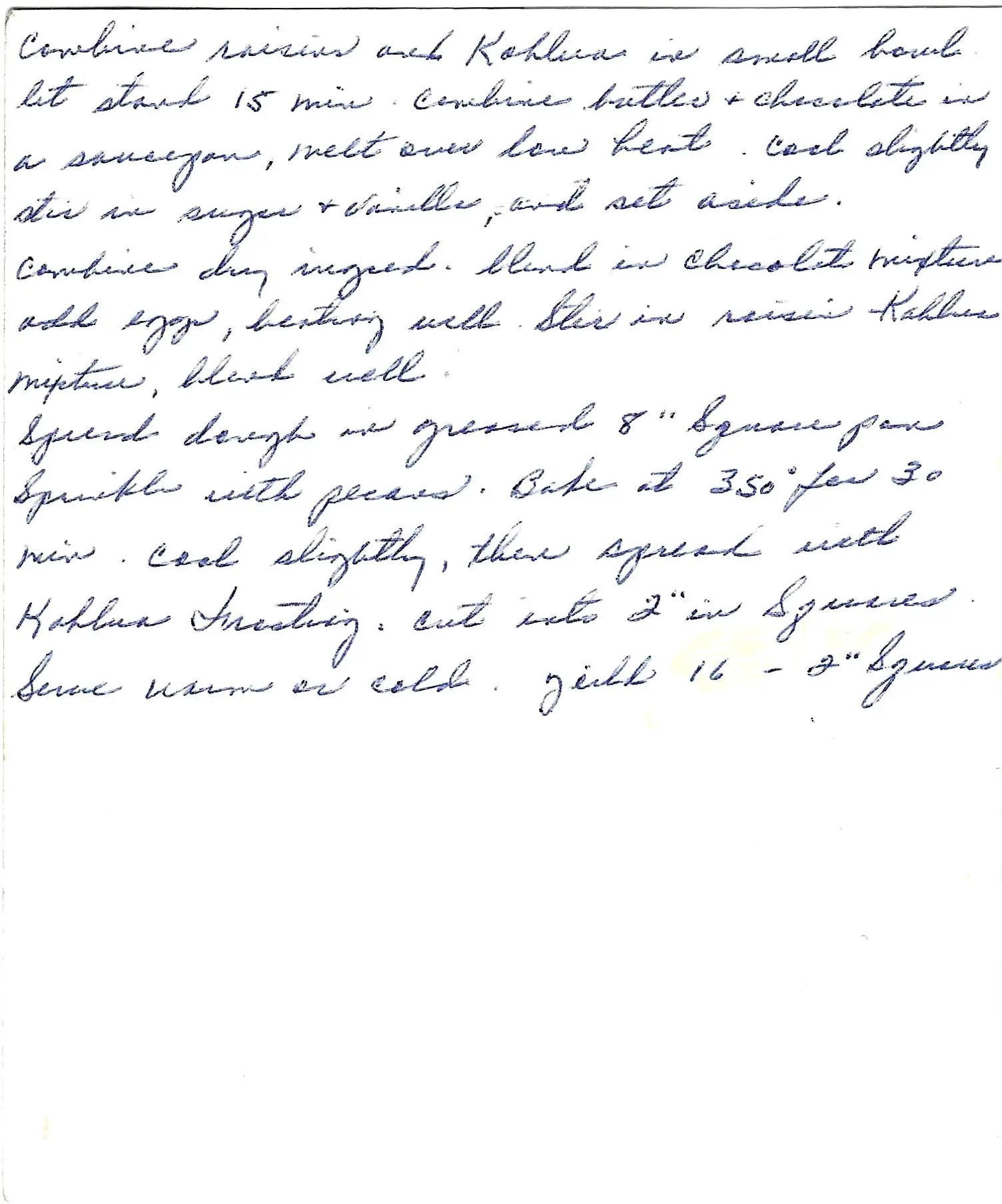 - Spread the Kahlua frosting over the warm brownies.