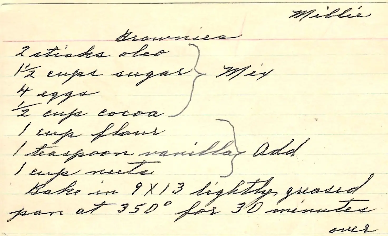 | 1 stick (½ cup) | Oleo (Margarine or Butter), softened |