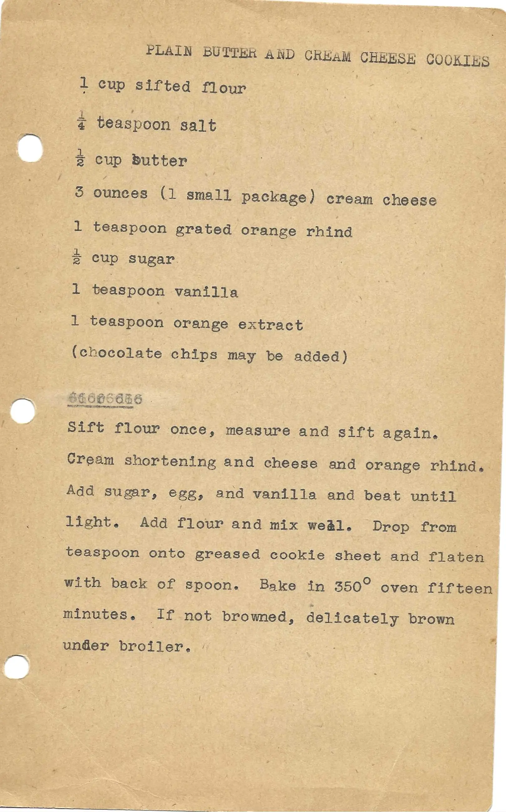 A simple drop cookie made with butter and cream cheese for a tender, tangy texture, flavored with orange rind and extract.